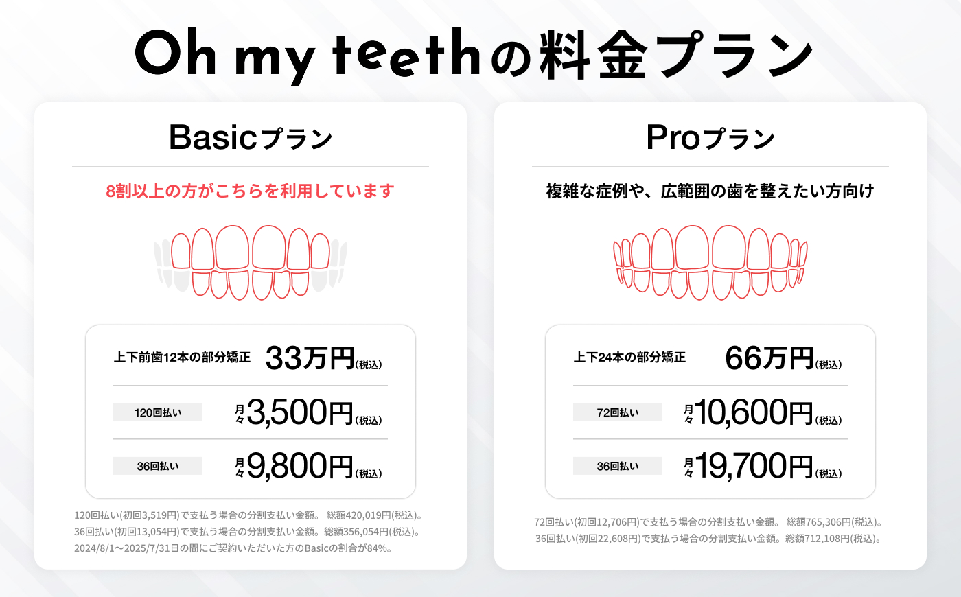Oh my teeth のマウスピース矯正は、料金プランがシンプル。