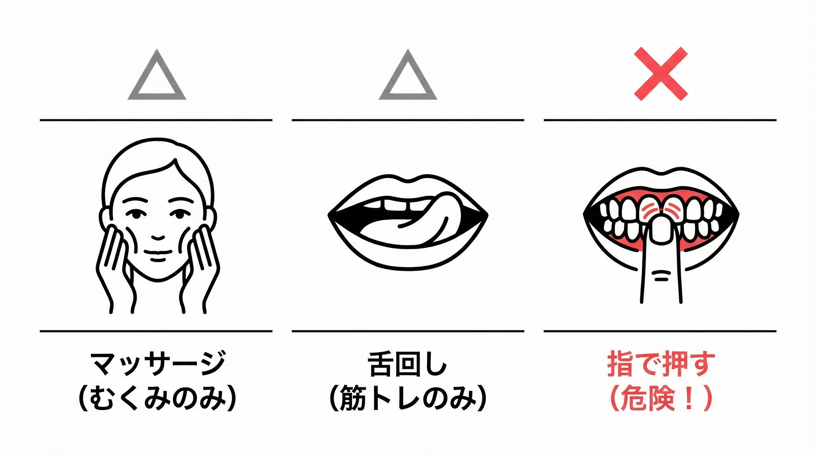 口ゴボを自力で解決しようと歯を指で押したりするのは非常に危険です。